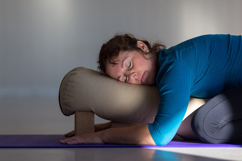 De myke terapeutiske yogaformene har fokus på pust, tilstedeværelse, avspenning og å gi slipp i spenninger i kropp og sinn. Stillingene stimulerer muskler og bindevev positivt og bringer ny energi til hele kroppen. Tyngdekraften, bolstere, blokker, kiler og bånd er med på å gi kroppen trygghet og støtte mens du sitter eller ligger i stillingene.