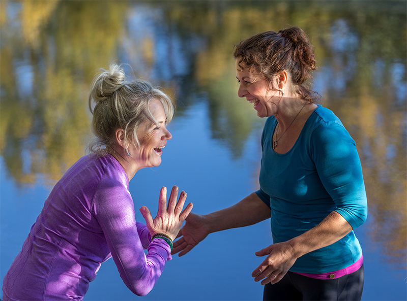 Vi kan tilby både fysisk, dynamisk yoga på matte eller rolig terapeutisk yoga på stol.